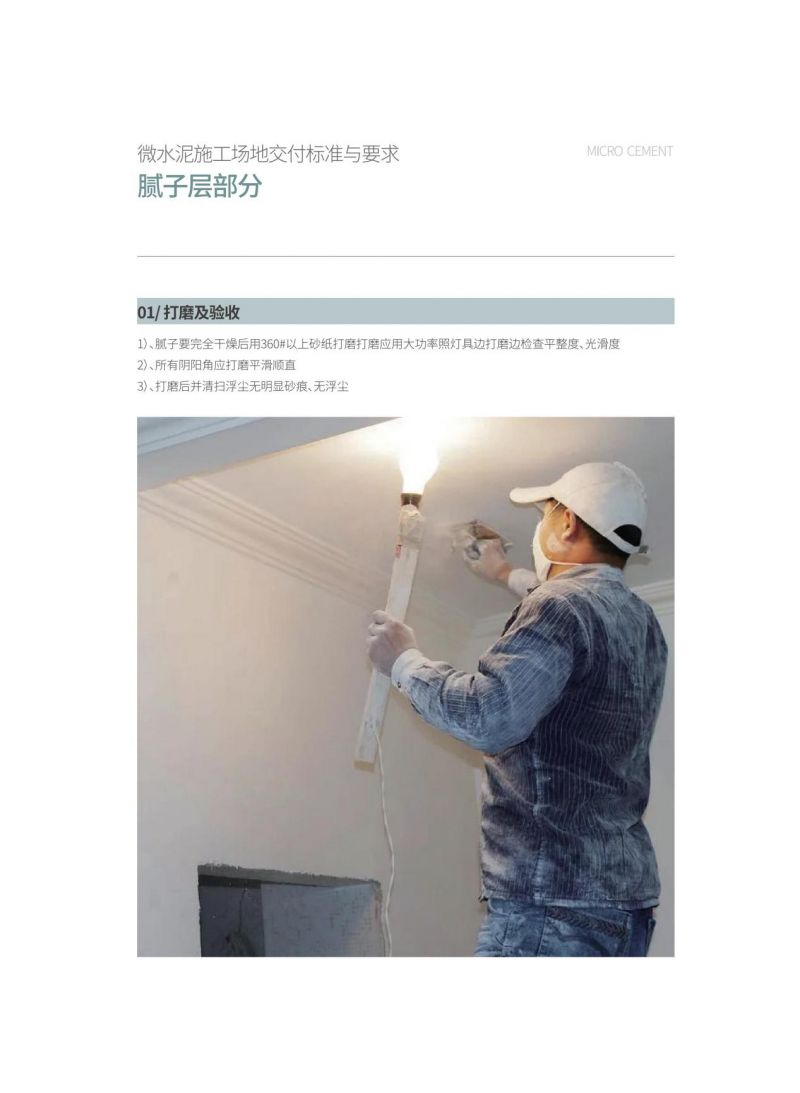 A:Vanlei萬磊微水泥驗收包含八大項:表面平整度(≤2mm/2m)、顏色均勻性(無色差)、防水性能(24小時不透水)、附著力(劃格法測試)、環保指標(VOC檢測)等,每一項都有具體量化標準。