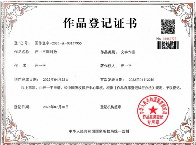 圓對數理論破解一批世紀性數學難題,如:《P=NP 問題》《連續統 CH 問題》《哥德巴赫猜想》《黎曼零點猜想》《霍奇猜想》《BSD 猜想費馬大定理》,組成圓對數定理成為新穎、可靠、獨立的數學基礎,組成圓對數定理,帶動了人工智能底層邏輯結構和芯片制作程序與方式。稱《汪一平圓對數》理論。