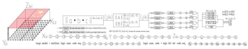 舉個例子:大家都熟悉小學里學過的算術例:有:“正向運算” 一步到位:(二維)3+4=7;3×4=12;(三維)3+4+8=15;3×4×8=96;若:“逆向運算” 就不能一步到位:(二維)7=3+4=2+5=1+6;12=3×4=2×6=1×12;(三維)15=3+4+8=1+5+9=2+5+8=…;96=3×4×8=2×6×8=1×6×16=…;困難在于傳統數學基礎是:皮亞諾公理化、集合論公理化,逆向運算不能一步到位。“自身系統不能證明自身” 的正確性,又沒有 “自身系統” 外部的隨機證明機制。1930 年哥德爾稱 “數學不完備性”。意味著傳統的經典分析或邏輯(集合論)分析都不讓人們滿意地接受。特別是,數學人工智能的 “量子計算” 邏輯信息傳輸的(0/1)K,是 “一個邏輯信息符號表達多量子糾纏態的不確定性”,存在 “不對稱性、不均勻性”;在人工智能中為 “機械可解釋性的神經網絡逆向工程”,不能獲得滿意的正反向解析。中國古數學《道德經》記載 “道生一,一生二,二生三,三生萬物”。