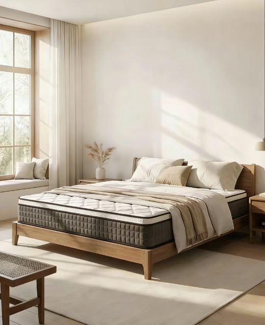 ● 極致靜音:采用無彈簧設計,從根源上消除床墊異響,實測噪音≤25dB,相當于圖書館的安靜環境,翻身、起夜、坐臥均無任何聲音,徹底解決傳統床墊的異響困擾,適配淺眠人群、腰脊不適對睡眠環境要求高的人群。