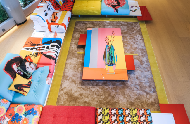 作為品牌最具標志性的設計之一,Mah Jong “麻將”沙發自1971年由德國設計大師 Hans Hopfer為羅奇堡創作以來,便以可拆解、可組合、可疊加的結構語言,徹底打破傳統客廳的固定布局,開創了一種更具流動性的空間表達。今年正值其誕生55周年,展覽通過多個空間單元,呈現這一經典沙發在不同設計語境中的多重演繹。跨越半個多世紀,Mah Jong 持續與來自時尚、藝術與設計領域的創作者及品牌展開合作,在圖案、織物與場景表達的不斷煥新中,始終保持鮮活而開放的生命力。