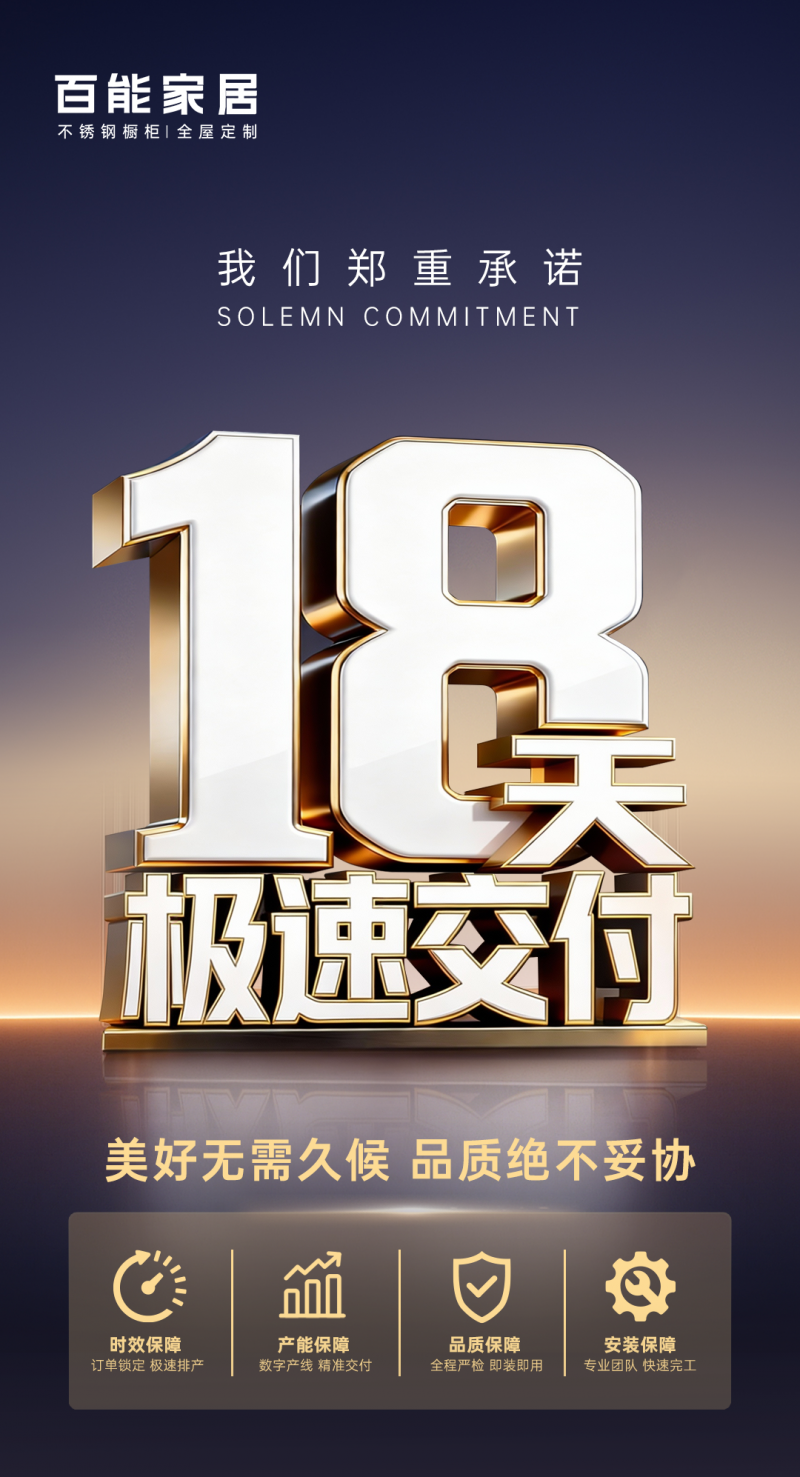 對消費者而言,這意味著什么?意味著無需在品質與效率之間艱難權衡,意味著裝修計劃可以精準推進而不必預留“等待期”,意味著“新家夢”不再因定制產品而遲遲無法落地。18天極速生產交付的能力,是智能制造的硬核支撐,更是對用戶時間的鄭重尊重。良好的交付體驗,為百能不銹鋼櫥柜全國銷量領先奠定了堅實的信任基石。