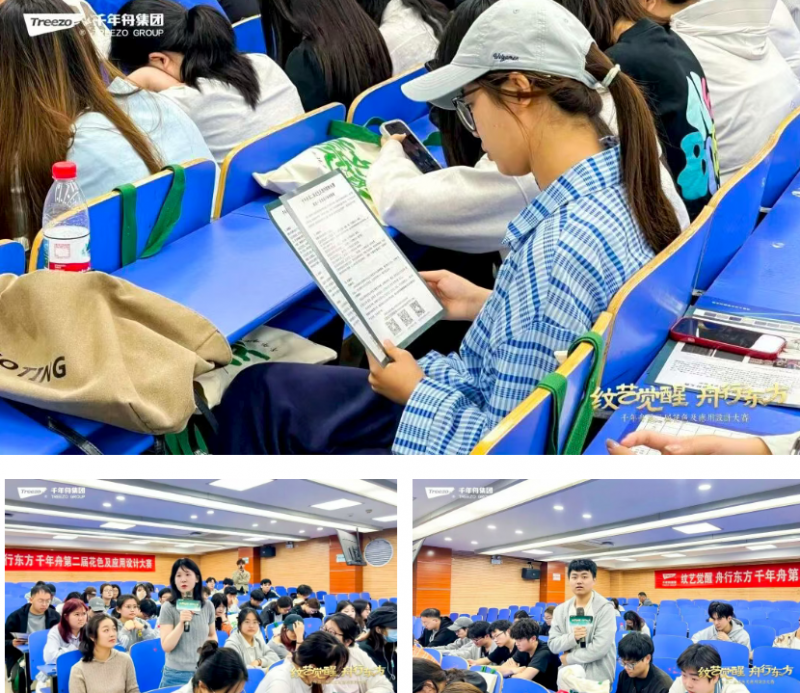 千年舟以本次花色及應(yīng)用設(shè)計大賽為紐帶,走進(jìn)校園直面青年學(xué)子,深度解讀大賽核心主旨、花色研發(fā)趨勢、家居應(yīng)用場景,將行業(yè)前沿技術(shù)、市場需求導(dǎo)向與產(chǎn)業(yè)實(shí)踐經(jīng)驗(yàn)帶入課堂。