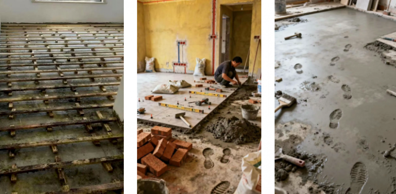 是蹲在滿是水泥灰的工地里,等上十幾天才能干透的傳統自流平?還是勉強用著兩三年就發霉腐爛的木龍骨地面,眼睜睜看著地板變形、走路吱呀作響?