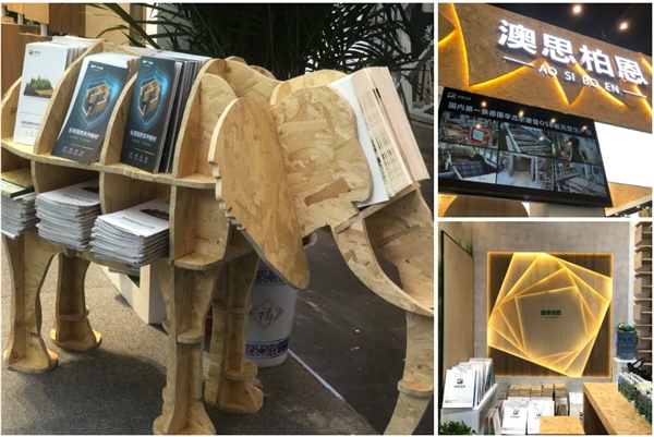 針對高檔家庭、大型工程裝修客戶,澳思柏恩實木切片OSB板具有結構穩定、綠色健康、無醛加工、天然松香、可塑性強等優勢,廣受中青年人群喜愛,能更好的的滿足追求環保、個性的家具廠商。同時,OSB板還是木制裝配式建筑的主要材料之一,因此也使得澳思柏恩展館在本次展會上格外受到矚目。