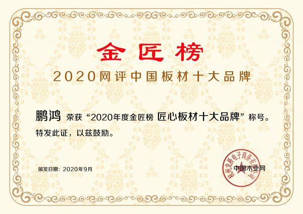 歷時(shí)數(shù)月評(píng)選,由中國木業(yè)網(wǎng)主辦的板材行業(yè)2020年度“金匠榜”正式發(fā)榜,作為行業(yè)權(quán)威的公開評(píng)選,這已是鵬鴻自該獎(jiǎng)項(xiàng)設(shè)立以來,第七次斬獲“中國板材十大品牌”獎(jiǎng)項(xiàng)殊榮,一舉拿下“匠心板材十大品牌”、“環(huán)保板材十大品牌”、“阻燃板十大品牌”三項(xiàng)重磅殊榮。