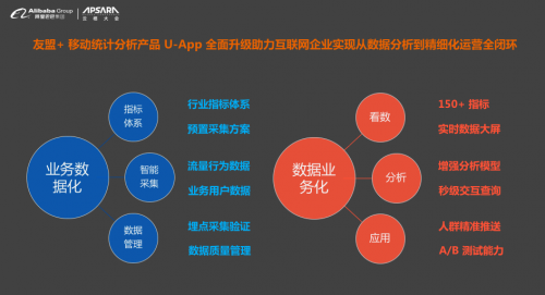 目前,友盟+的移動統(tǒng)計分析產(chǎn)品U-App已經(jīng)上線了行業(yè)指標體系、智能采集方案等功能,實現(xiàn)流量行為數(shù)據(jù)和業(yè)務(wù)用戶數(shù)據(jù)整合的同時,也提供了非常強大的數(shù)據(jù)質(zhì)量管理能力。友盟+移動統(tǒng)計分析U-App在可為企業(yè)提供150萬+基礎(chǔ)業(yè)務(wù)指標的衡量能力基礎(chǔ)之上,與阿里云合作,為企業(yè)提供數(shù)據(jù)實時大屏,全方位為企業(yè)打造實時數(shù)據(jù)分析和洞察。從企業(yè)的業(yè)務(wù)需求來看,友盟+移動統(tǒng)計分析U-App從基礎(chǔ)指標統(tǒng)計、到高級分析洞察,再到人群的運營觸達,完全滿足互聯(lián)網(wǎng)企業(yè)開發(fā)者利用數(shù)據(jù)驅(qū)動業(yè)務(wù)的能力訴求。輔助業(yè)務(wù)增長,助力業(yè)務(wù)邁入發(fā)展新階段。