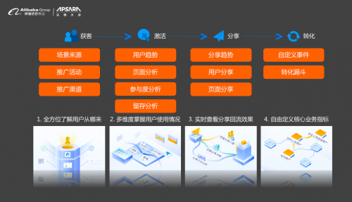 同時,從發(fā)展速度來看,小程序已經(jīng)從跑馬圈地、野蠻生長的階段,到了需要考慮如何利用數(shù)據(jù)做好私域流量精細化運營的階段了。友盟+小程序統(tǒng)計U-Mini Program能夠提供全生命周期數(shù)據(jù)鏈路的覆蓋,并對獲客、激活、分享、轉(zhuǎn)化等數(shù)據(jù)進行全方位的展示;為了降低本身小程序開發(fā)入門的門檻,友盟+提供了多種便捷的開發(fā)工具和開發(fā)接入方式,極大的降低了在用戶在各大平臺發(fā)布小程序的門檻。
