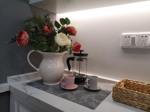 不能忽略的是主人頗具文藝柔美的女性特質(zhì)。除了熱鬧的陽臺花園,亭頤在多處放置了進(jìn)口仿真花,飽滿而艷麗,給人色彩的跳躍感。即使是冷冰冰的五金,亭頤也全部都選擇圓潤的曲線設(shè)計,甚至淋浴噴頭的設(shè)計也是精心處理之后的選擇。仔仔細(xì)細(xì)揣摩之后的設(shè)計才會有令人滿意的最終呈現(xiàn),才能讓主人覺得這生活的溫度啊,剛剛好。