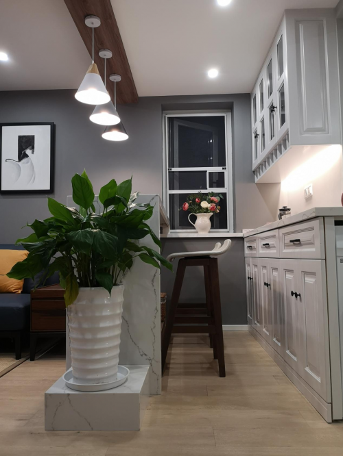 生活的溫度在于陽光、植物和熱愛。在這個老房改造的案例中,亭頤保留了原有的窗戶,讓整件屋子如往常一樣陽光充沛。陽光所到之處一定會有花與綠植,室內(nèi)花園的設(shè)計靈感隨之而來。陽臺是整間屋子最靠近太陽的地方,這里需要生機(jī)盎然,需要活潑而鮮艷的點綴。每天看到光影在葉子和花朵間緩慢移動,風(fēng)從身邊自在穿行,自然的細(xì)微力量總能讓內(nèi)心變得清明澄凈。居家不僅僅是一蔬一飯,更多的是與周圍的事物相處,亭頤在乎的是每一處日常的感官呈現(xiàn),而空間的溫度在于找準(zhǔn)設(shè)計的“開關(guān)”,多一點會心的靜物就會顯得溫暖而明亮。