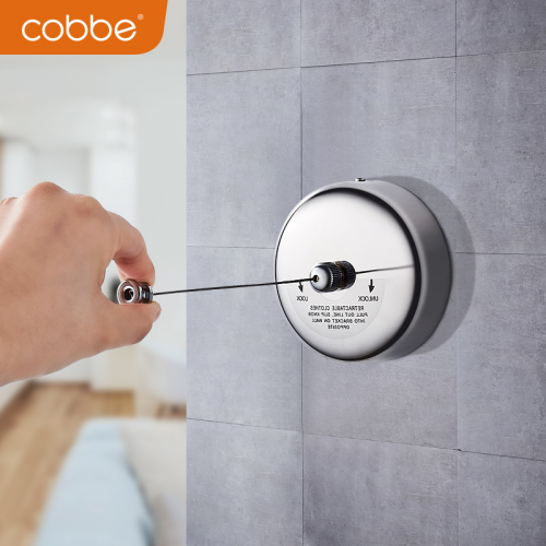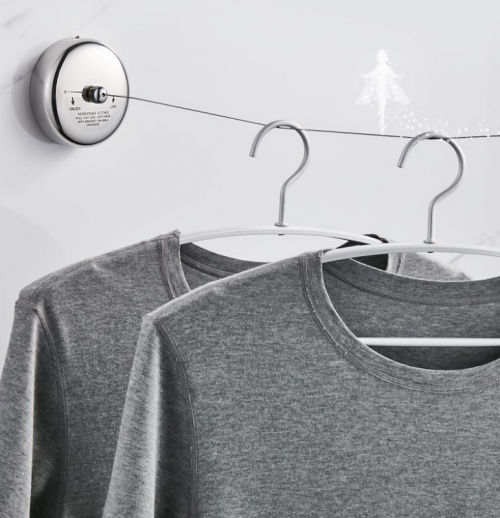 卡貝可收縮隱形晾衣繩了解一下。使用的時候,將晾衣繩抽出,拉到合適長度后,掛在另一端的掛扣處,一鍵鎖緊。這樣就可以晾曬衣服啦!