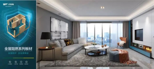 千年舟阻燃OSB板通過國家防火建筑材料質量監督檢驗中心檢測,獲得公共場所阻燃制品及組件標識使用證書,符合國標GB 8624-2012標準:難燃B1(c-s2,d0,t1)級,產煙特性、燃燒滴落物、煙氣毒性檢測均達到較高要求。可廣泛應用于公共場所及家庭室內裝飾裝修,是建材家居行業新一代實用性安全防護家具板。