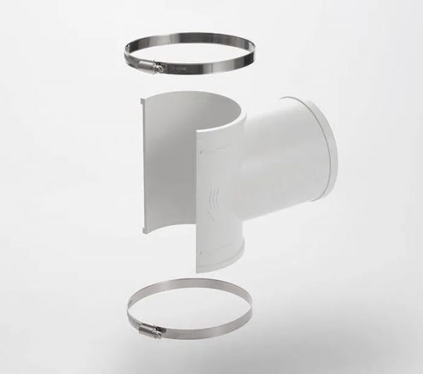 立管是HDPE材質,選用同樣材質的吉博力HDPE T型三通熱熔焊接或電熔管箍固定。
