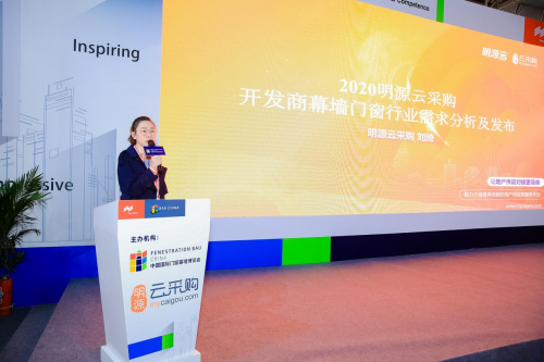 最后,明源云采購市場總監劉綺,根據明源云采購平臺大數據,對地產行業未來增長空間及門窗幕墻行業需求做了解讀。她說,中國城市化率至少有20%的增長空間,預計需要20~25年才能完成。2020年,云采購線下活動參會開發商中,70%以上的開發商對門窗幕墻有需求,涉及鋁合金門窗、欄桿、入戶門工程、防火門窗等10多個品類。
