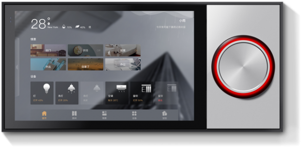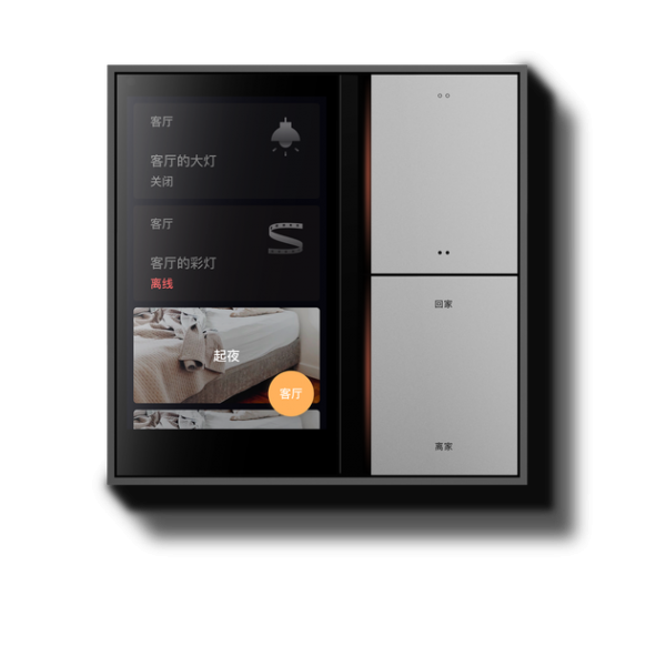 3.1寸800*480分辨率高清觸控屏,4組場景開關按鍵,支持場景記憶;零改動,適配86底盒,全鋁合金機身;雙數字硅麥,內置揚聲器;WiFi、BT無線協議,可擴展云圖無源情景面板;支持2路繼電器燈光控制、1路485控制;沉浸式氛圍燈……以上是云圖mini超級開關的配置,但價格只有499元,瞄準年輕消費群體需求。