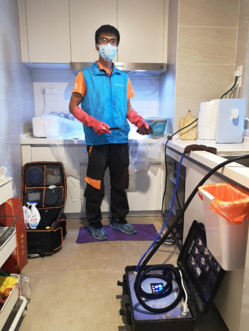 實地廣州常春藤物業人員為業主清洗抽油煙機