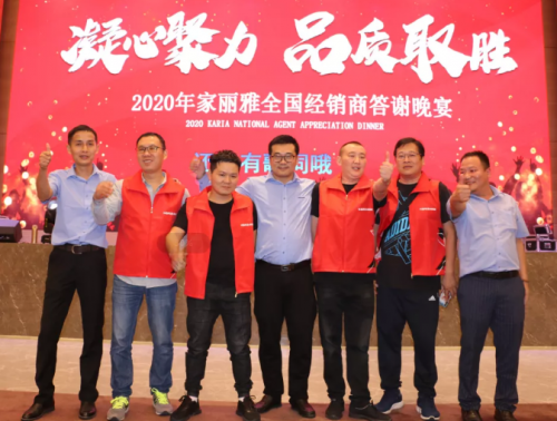 “服務(wù)客戶,用戶至上”這是家麗雅一貫堅持的經(jīng)營理念,為此家麗雅公司打造了一個充滿活力、專業(yè)高效的服務(wù)型團隊。家麗雅的成功離不開所有家麗雅經(jīng)銷商和家麗雅人的努力付出與支持,在答謝晚宴中,家麗雅公司團隊向與會全國家麗雅經(jīng)銷商表達了忠心的感謝。未來的征途大道,家麗雅必將秉持初心,與全國經(jīng)銷商披甲同行!奮斗不止,追夢不息!