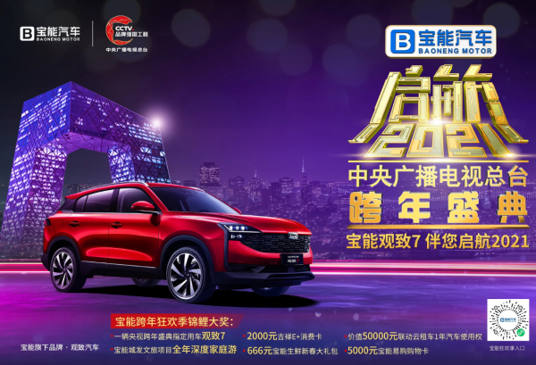 2020年即將過(guò)去,辭舊迎新的跨年夜,闔家團(tuán)圓齊坐電視機(jī)前,共同欣賞跨年晚會(huì)迎接新年,是一件溫馨幸福的事情。近日,寶能汽車攜手中央廣播電視總臺(tái)正式對(duì)外官宣,寶能汽車將獨(dú)家冠名《啟航2021——中央廣播電視總臺(tái)跨年盛典》,為全國(guó)人民在歲末奉上一場(chǎng)感官盛宴。