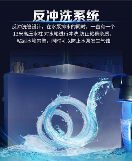 如果是用于廚房,有各種不可避免的軟硬殘渣,凱德賽有著40mm的粉碎切割泵,可輕松將廚房的殘渣完全排出。另外,粉碎切割泵對油污的處理排放能力也更強,配合反沖洗管,不用擔心油脂凝聚。