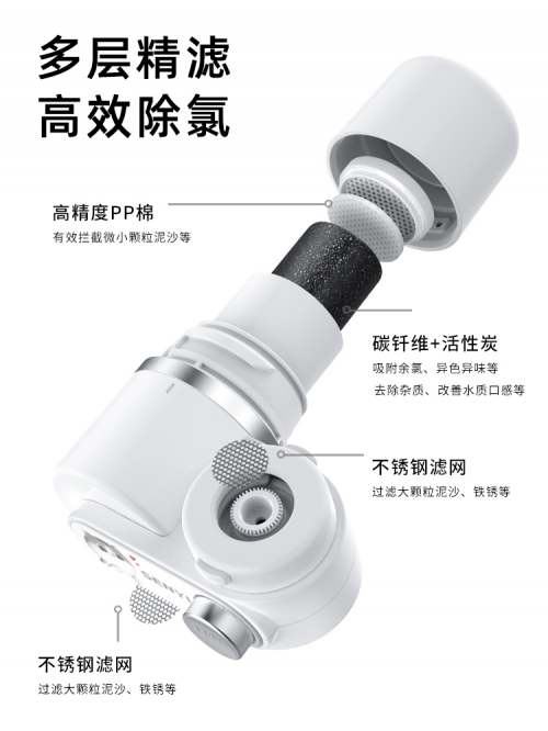 森意V01A水龍頭凈水器高效去除水中重金屬、余氯等有害物質,保留鈣,鉀,鈉等微量元素等有益礦物質,凈化后水質呈天然弱堿性,去除水中影響口感物質,口感清冽甘甜。適合日常飲用、運動補水、烹飪褒湯、淘米洗蔬果等。