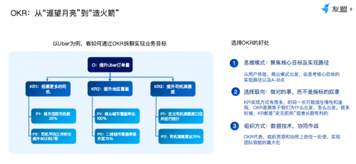第三、OKR更大程度上是一種組織方式,它代表組織資源和協(xié)同往一處使,這樣團(tuán)隊(duì)效能才可以實(shí)現(xiàn)最大化,整體來(lái)說(shuō)就是以數(shù)據(jù)驅(qū)動(dòng)、協(xié)同作戰(zhàn)的目標(biāo)文化。