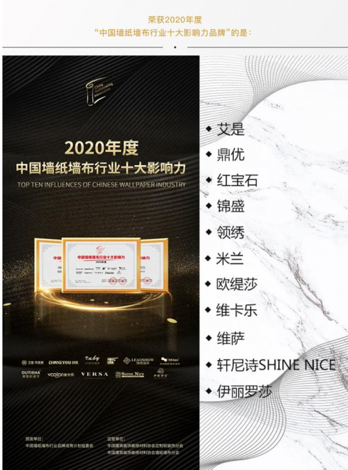 中國墻紙墻布行業(yè)·十大影響力品牌(生產(chǎn))大獎(jiǎng)