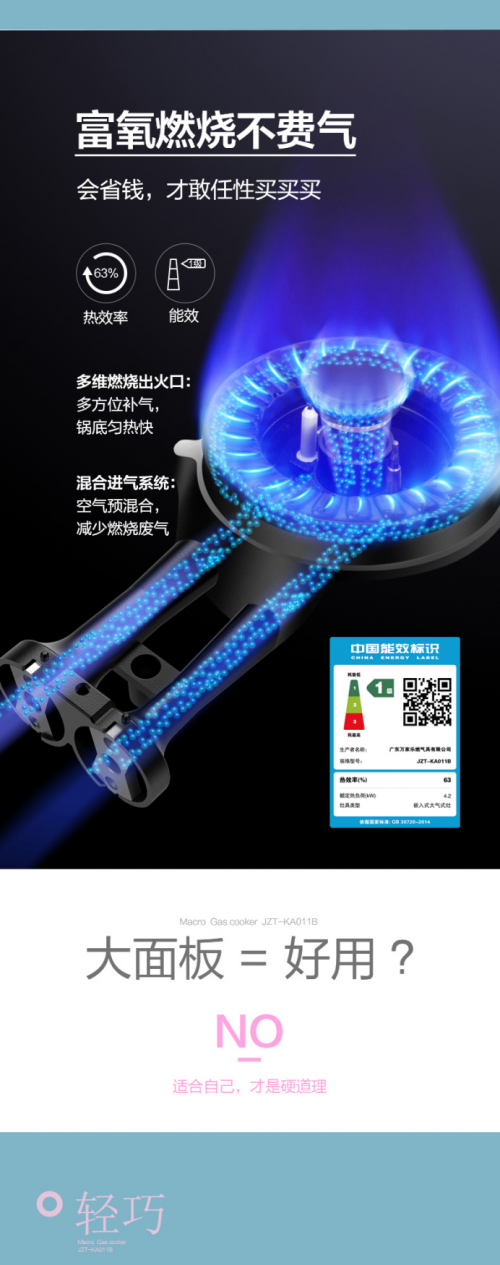 萬家樂作為36年專攻廚衛電器的經典品牌,對年輕的消費者做了詳細用戶調研。在新“食”代,年輕人的生活節奏快,居住、裝修都更講究簡約&利用率,所以年輕人的廚房也需要更輕快,輕巧,高效的灶具。KA011B作為針對年輕廚房需求打造的產品,以更輕快,更輕巧,靈活控火,迅捷猛火的優勢被列入當下年輕人廚房電器的必選LIST。