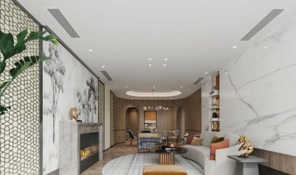 濱江壹號空中別墅項目位于長江江畔的南京濱江壹號的百米高空的四十三、四十四層,除滿足基本功能的需求外,在空間設計上輕裝修重裝飾,使用暖色系的顏色可以表現溫馨。