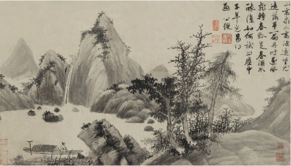 姚綬《春酒放舟圖》