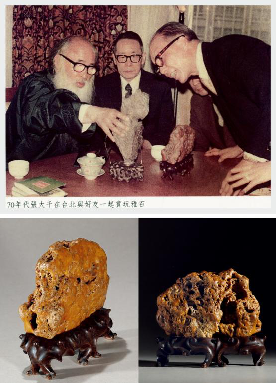 清·張大千賞玩黃蠟石供石擺件