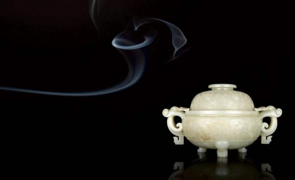 清乾隆·白玉雕云龍紋三足蓋爐