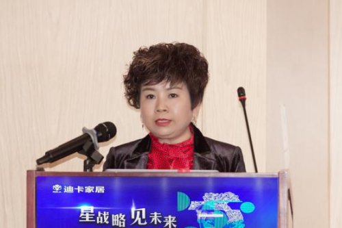 迪卡家居總經理胡瓊玲在本次研討會上代表迪卡家居全體員工對一直支持迪卡家居發展的經銷商伙伴,幫助迪卡家居進步的各界朋友,表示了衷心的感謝!她表示,迪卡家居已走過13個年頭,在這默默耕耘的13載中,每年到保持高速增長穩定發展,取得這些輝煌業績的背后都離不開廣大經銷商伙伴們的努力付出與信賴!