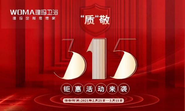 值此315品質消費之際,瑝瑪線上線下全國門店誠心鉅獻,推出“質”敬315”活動,全國鉅惠,此舉既證明了瑝瑪衛浴的企業實力,也表明了瑝瑪對產品質量的信心,更是瑝瑪對所有消費者負責任的態度!