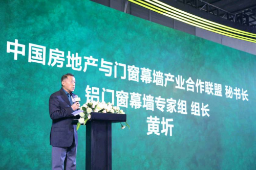 隨后中國房地/與門窗幕墻產業合作聯盟/秘書長、鋁門窗幕墻專家組/組長黃圻先生發表致辭,黃秘書長高度認同高登勢必堅持以鋁代木,助力綠色地產建設的決心,門窗幕墻是地產建設必不可少的。