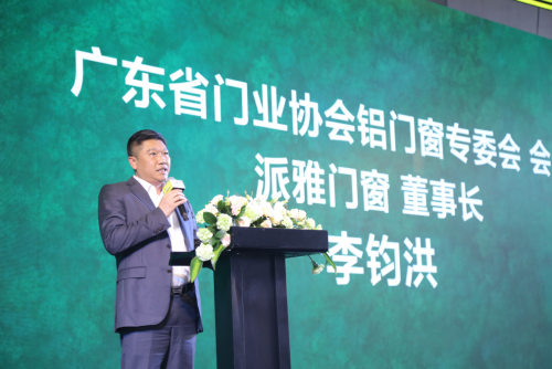 接下來,廣東省門業協會/鋁門窗專委會會長、派雅門窗董事長李鈞洪先生上臺發言!正如李會長所述,高登作為大家居企業的主力供應商,同時作為派雅的多年供應商,不斷創新突破,以實際行動/推動綠色健康的家裝創新產品發展,派雅也鄭重承諾加入到高登以鋁代木的行動中來,一起倡導使用綠色環保健康的原材料!