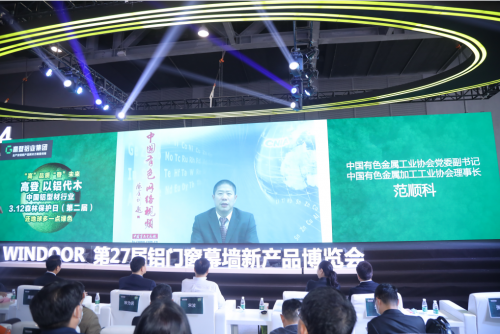 中國有色金屬工業協會黨委副書記、中國有色金屬加工工業協會理事長范順科通過視頻發表講話。一則短短的視頻,讓我們知道,范書記說高登作為中國鋁型材行業的第一梯隊品牌代表,踐行綠色環保的理念,高度肯定高登鋁業舉辦以鋁代木,保護森林,保護地球活動的初心。