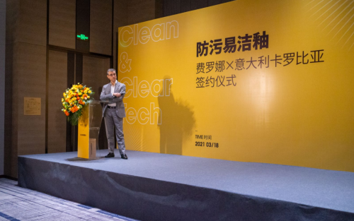 3月18日下午,費羅娜×意大利卡羅比亞戰略合作簽約儀式在佛山新城保利洲際酒店隆重舉行。費羅娜水泥瓷磚創始人陳高照、卡羅比亞總經理及執行董事Nazzario Di Mauro、佛山市陶瓷行業協會秘書長尹虹博士、臺灣竹工凡木設計研究室創始人邵唯晏與各大媒體朋友歡聚一堂,星光熠熠,共同見證費羅娜×意大利卡羅比亞強強聯合,推出防污易潔釉,攻克亞面瓷磚防污難題。
