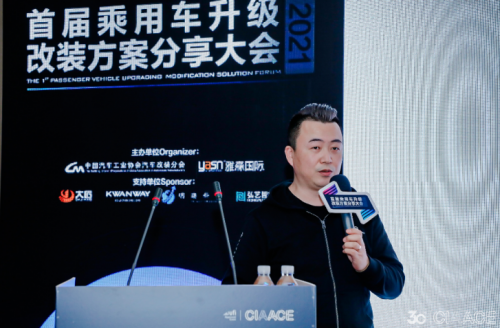 愛優卡(天津)汽車科技有限公司總經理張潔分享了《汽車設計與方案的落地性》,她認為升級改裝行業同質化嚴重,定制化個性化缺失,90后、00后車主增加個性化需求增加。愛優卡做免費整套設計方案,包括顏色搭配、設計理念等,自主設計研發了奔馳清越版四座套件、側壁氛圍燈組合、七座扶手箱等產品,致力于讓天下沒有難做的改裝。