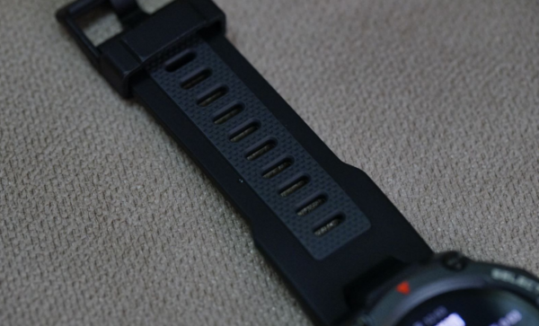 再看表帶部分,使用了親膚材質的硅膠表帶,而且在內側有鏤空導汗設計,既能透氣又有利于排出汗水,這樣的小細節真是愛了。