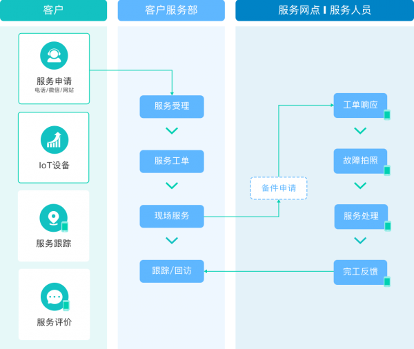 作為面向企業用戶提供的數字化客戶服務管理運營平臺,售后寶提供場景化的客戶服務運營管理SaaS服務,幫助企業連接客戶,管理服務合同,組織產品、備件、服務網絡,優化任務分配,協助技術人員完成安裝、維護,更換和檢測等售后服務,打通預防、檢測、防御、響應、派工、回訪的全流程服務鏈。