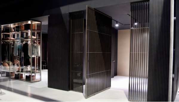 意匠展館設計采用意式極簡風格,憑借獨有黑色外立面設計,輔以富有張力的線條元素,運用不同層次的燈光效果,增加視覺上的空間感,獨創一種時尚與潮流。