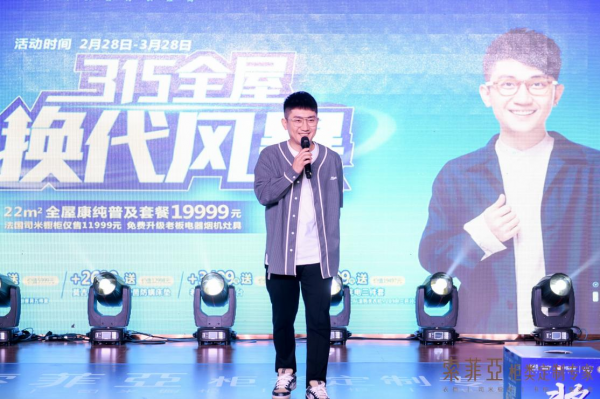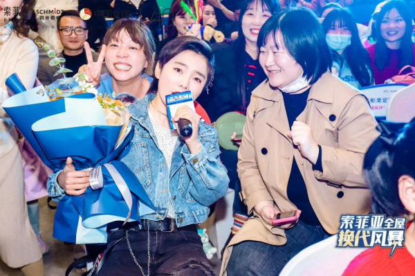 歌手許飛助陣長沙索菲亞,為全屋換代風暴站臺,號召現場觀眾華麗煥新,暢享換代新生活。