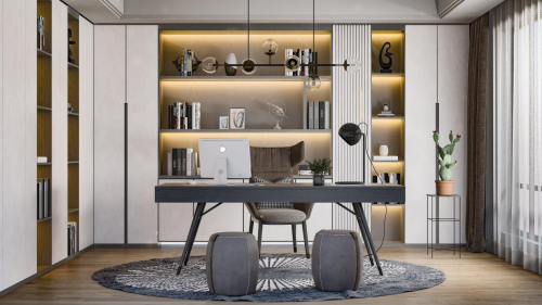 餐邊柜開放格的設(shè)計(jì)可以讓你展示你珍藏已久的紅酒,恰到好處地增加了空間的美觀性。打造書桌、書柜一體化的書房,可以有效節(jié)約書房空間,讓屋內(nèi)布局美觀連貫,也很好地提升了書房的使用體驗(yàn)。