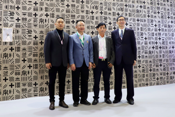 (左起:蘭帛家居總經理胡亞軍,中國家用紡織品行業協會會長楊兆華先生,柳撟集團董事長傅妙奎,三星羽絨董事長朱志良)