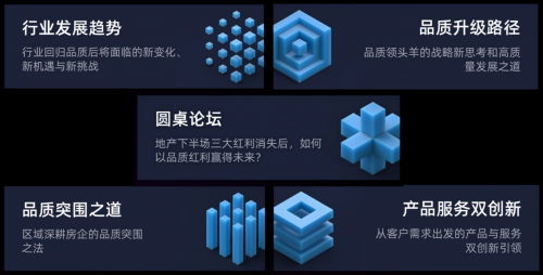 據悉,明源云鏈將在此次峰會上邀請到地產品質扛旗者綠城、融創、朗詩、中國金茂來做相關議題分享,還有一批近兩年涌現出來的品質新秀,如東原、康橋;更有通過產品力和服務力實現區域深耕和競爭突圍的三盛、永威等,大家的分享將緊緊圍繞以下五大核心議題;