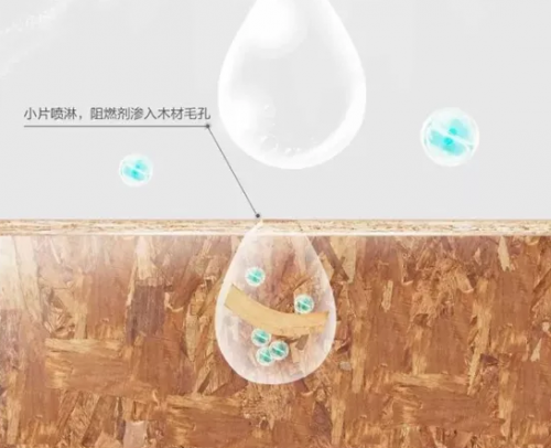 當(dāng)然,僅靠阻燃工藝還不夠。澳思柏恩還為阻燃OSB板增加了阻燃劑,通過在黏合劑中添加特殊的阻燃劑而阻斷氧氣的進(jìn)入,隔斷里層木質(zhì)材料起火或降低火勢(shì)蔓延進(jìn)度。外用阻燃工藝,內(nèi)用阻燃劑,里應(yīng)外合,高效阻燃。