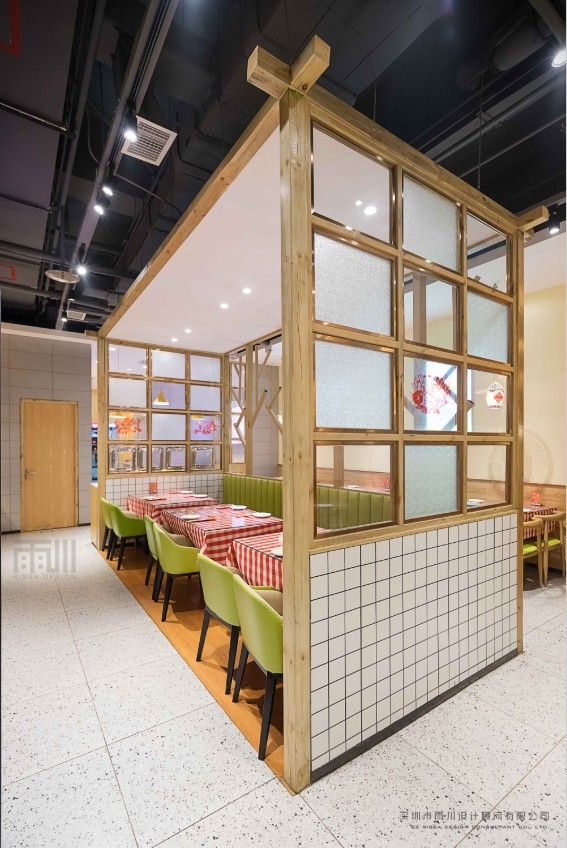 正所謂,圍爐聚炊歡呼處,百味消融小釜中。火鍋作為餐飲中備受喜愛的一種形式,帶著市井煙火的親切和海納百川的包容,串聯起了從春夏到秋冬一年四季情感的交流。從蜀地元素到園林風光,從靜謐藍色到夢幻燈光,從簡約時尚到清新自然,普通的火鍋店千篇一律,但有趣的火鍋店百里挑一。在竹園村酸菜魚火鍋的空間設計上,雨川設計充分挖掘品牌基因,將山城的文化特質和時尚風潮熔鑄于一個空間里,運用材料和燈光營造人與空間之間舒適又驚喜的感覺,以簡練的線條,純粹的色彩、不雕琢的質樸表達出中式的清雅端莊。沒有繁復的裝飾,光線沉穩克制,讓人們的注意力自然地集中在面前將沸未沸的湯和新鮮運抵的食材之上。拋去城市之中的浮躁,閉上眼就能穿越空間秒回山城腳下,從容淡雅,不僅有種返璞歸真之感,還充盈著自然與活力,在自然的氣息中體會溫馨和舒適。