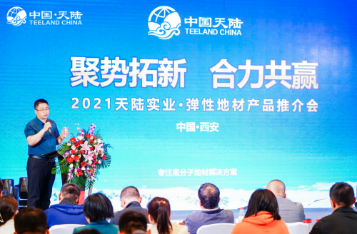 2021年4月27日,天陸實業彈性地材產品推介會在古城西安希爾頓酒店盛大召開,大會圍繞“聚勢拓新·合力共贏”的主題展開。本次會議主要面對西北地區,與經銷商朋友和行業人士共同探討,分享經驗,共享雙贏。