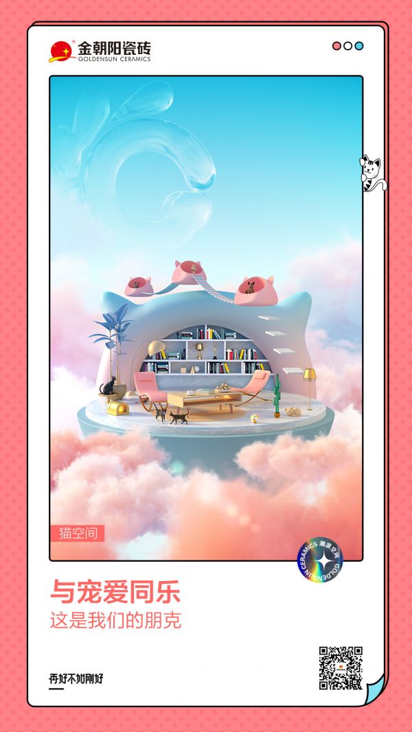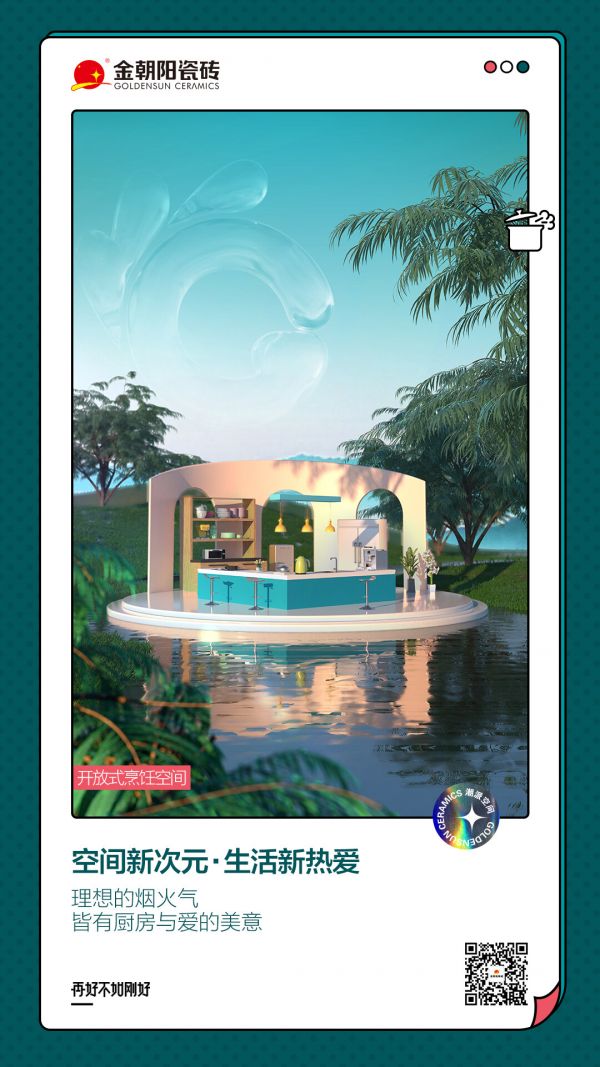 金朝陽瓷磚正是緊跟國際潮流,以全新的姿態,挖掘產品附加價值,用營銷破圈的思路,深度植入新鮮有張力的人居新理念,用讓人眼前一亮的充滿意趣的次元潮空間喚醒當代消費者更期待的生活向往。
