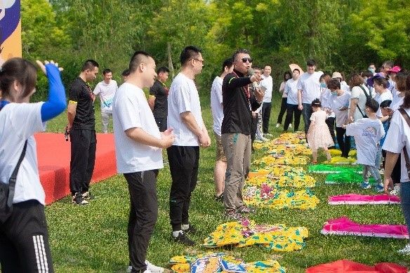 業主們在工作人員的帶領下順利來到活動場地,并按事先分好的戰隊有序組隊。隨后,天津物業公司市場拓展部總監呂媛媛代表全體工作人員向業主們表達了金地物業與業主共建美好社區的期待,同時為所有戰隊加油打氣。在主持人的帶領下,“悅享HOME+健走金地橙跑團”活動正式開始,所有戰隊開啟破冰及熱身環節。12個戰隊,分別派出最強的勇士,與相鄰戰隊進行“決斗”,用石頭剪刀布的形式與其他組隊員比拼,經過多輪比拼,最終所有戰隊都成功贏得團隊臂貼及能量背包。
